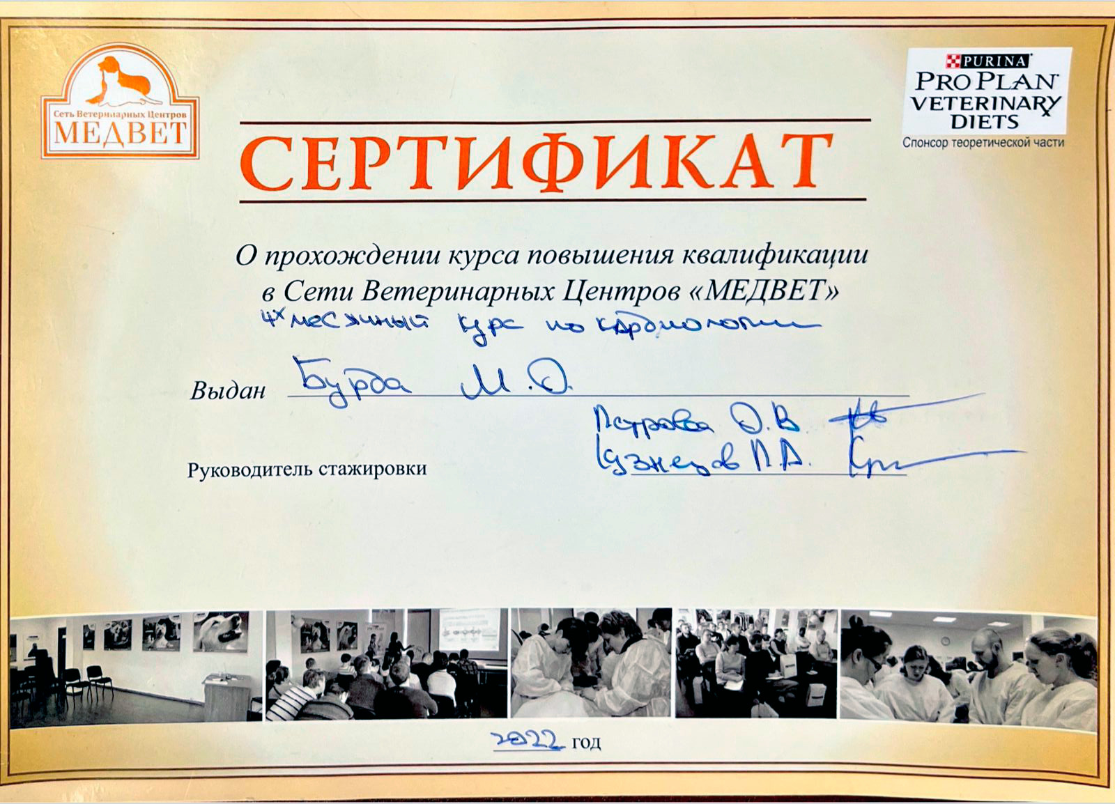 2022 г. — курс повышения квалификации по специализации — кардиология.