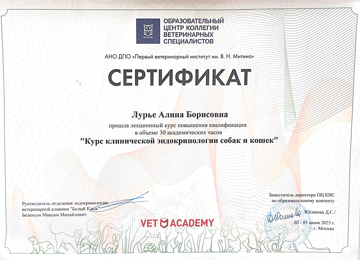 Ветеринарный врач-терапевт, нефролог, эндокринолог
