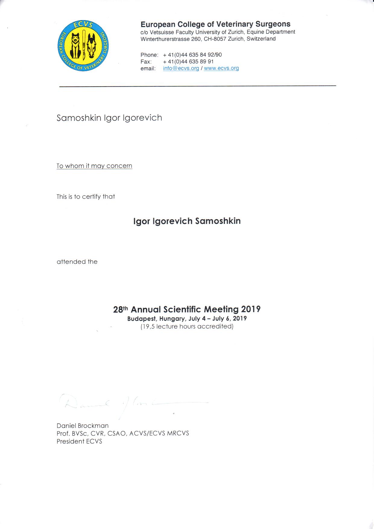 С 2018 по 2020 год член правления и член Экспертного совета Российского Общества Ветеринарной Ортопедии и Травматологии (РуСВОТ).