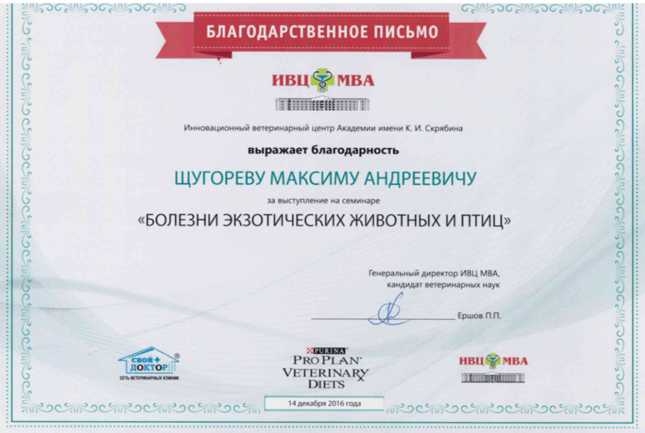 2002 — 2007 гг. — повышение квалификации, как специалист по экзотическим животным.