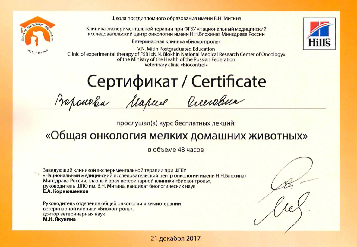 2021 г. — Окончила курсы повышения квалификации УЗИ