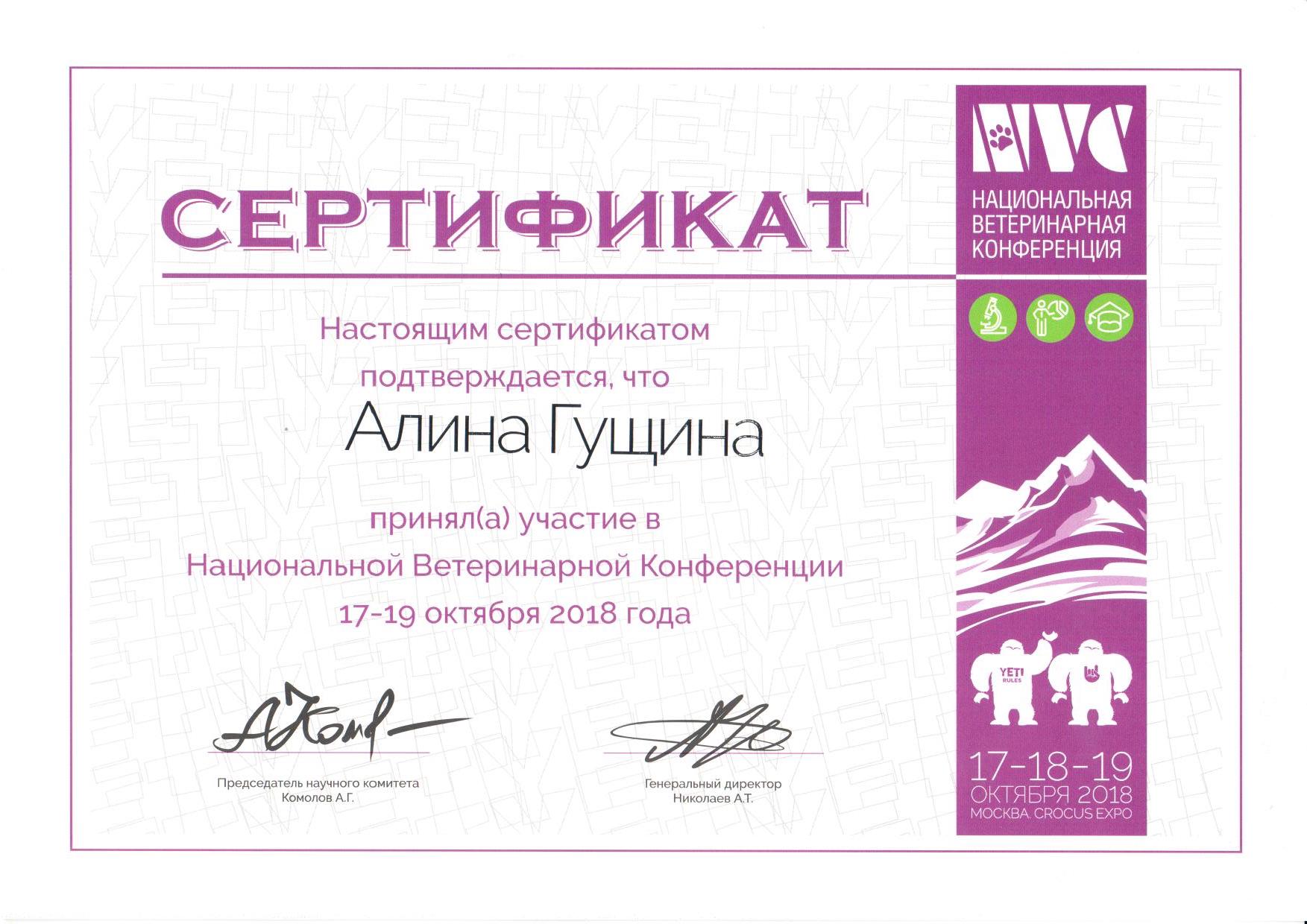 2020 г. — окончила курс «Диетолог-нутрициолог» Royal Canine