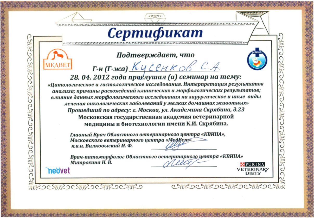 Является членом анестезиологического ветеринарного общества России – ВИТАР.