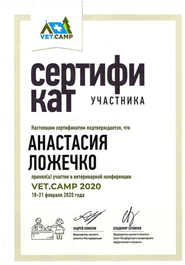 2021 г. – участие в Санкт-Петербургском ветеринарном хирургическом конгрессе.