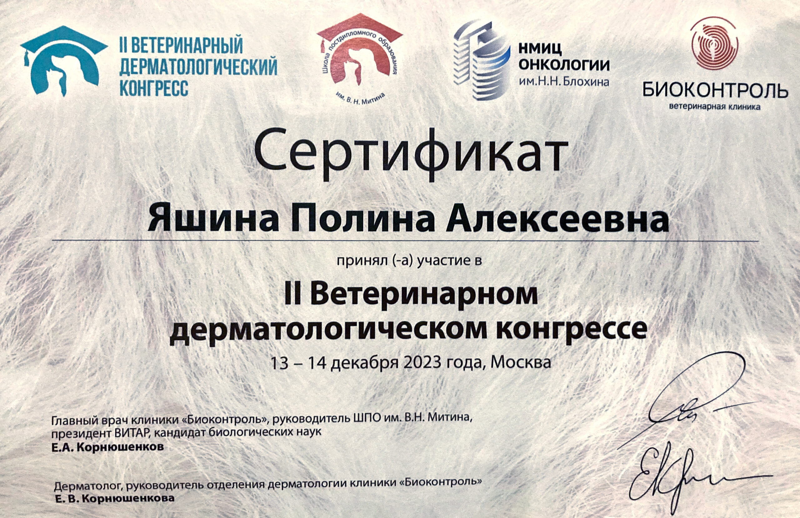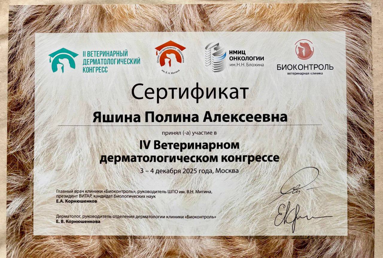 2020-2021 гг. — ветеринарный врач-дерматолог ВК «Центр ветеринарной дерматологии»