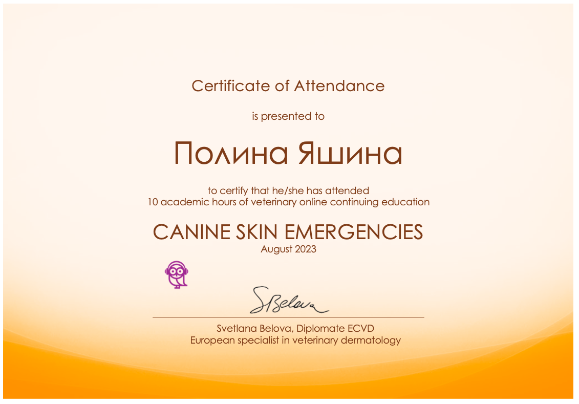 2023 г. — курс лекций «CANINE SKIN EMERGENCIES»