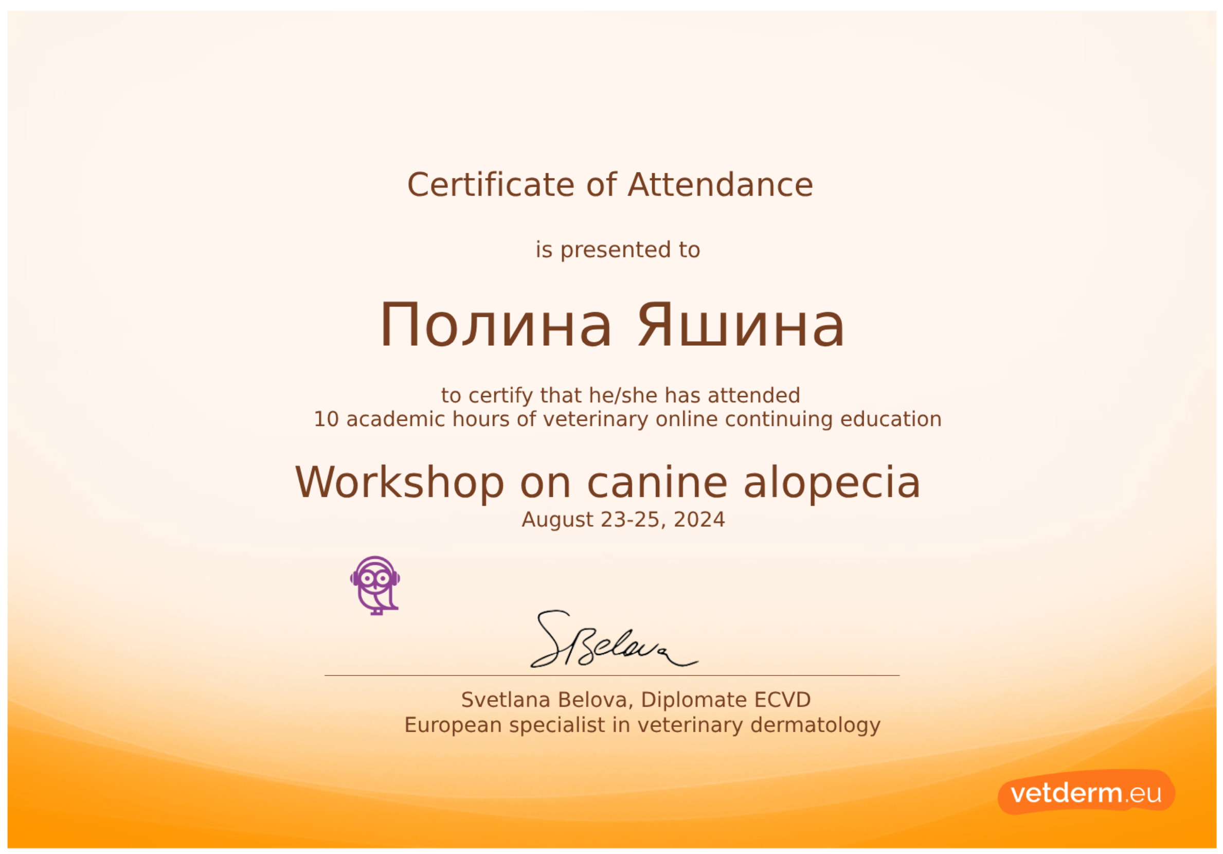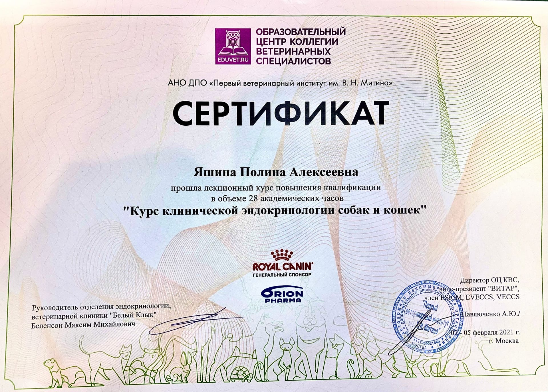 2020 г. — элективный курс Компаньон-Vet по дерматологии, эндокринологии