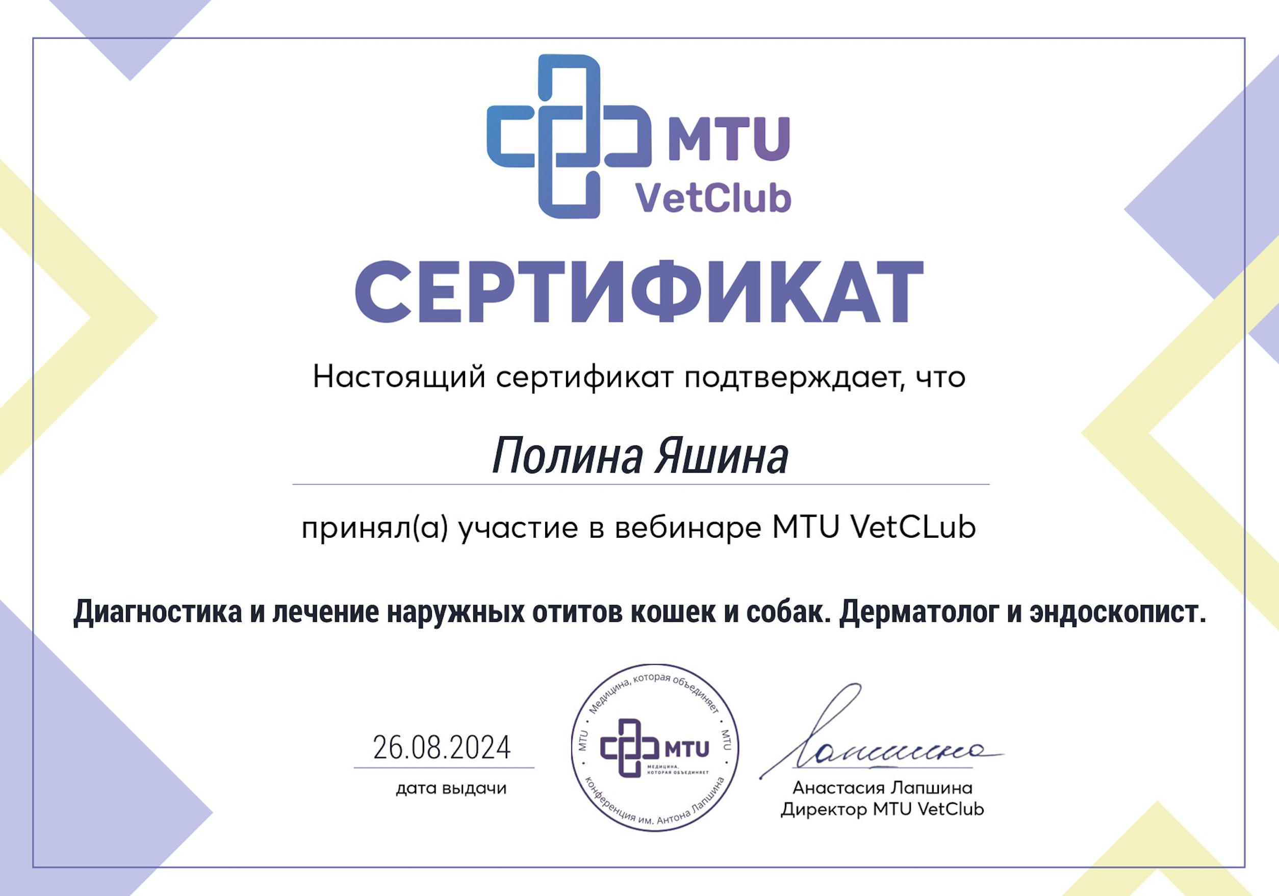 2025 г. — конгресс «Междисциплинарный подход к заболеваниям уха собак и кошек» г. Казань