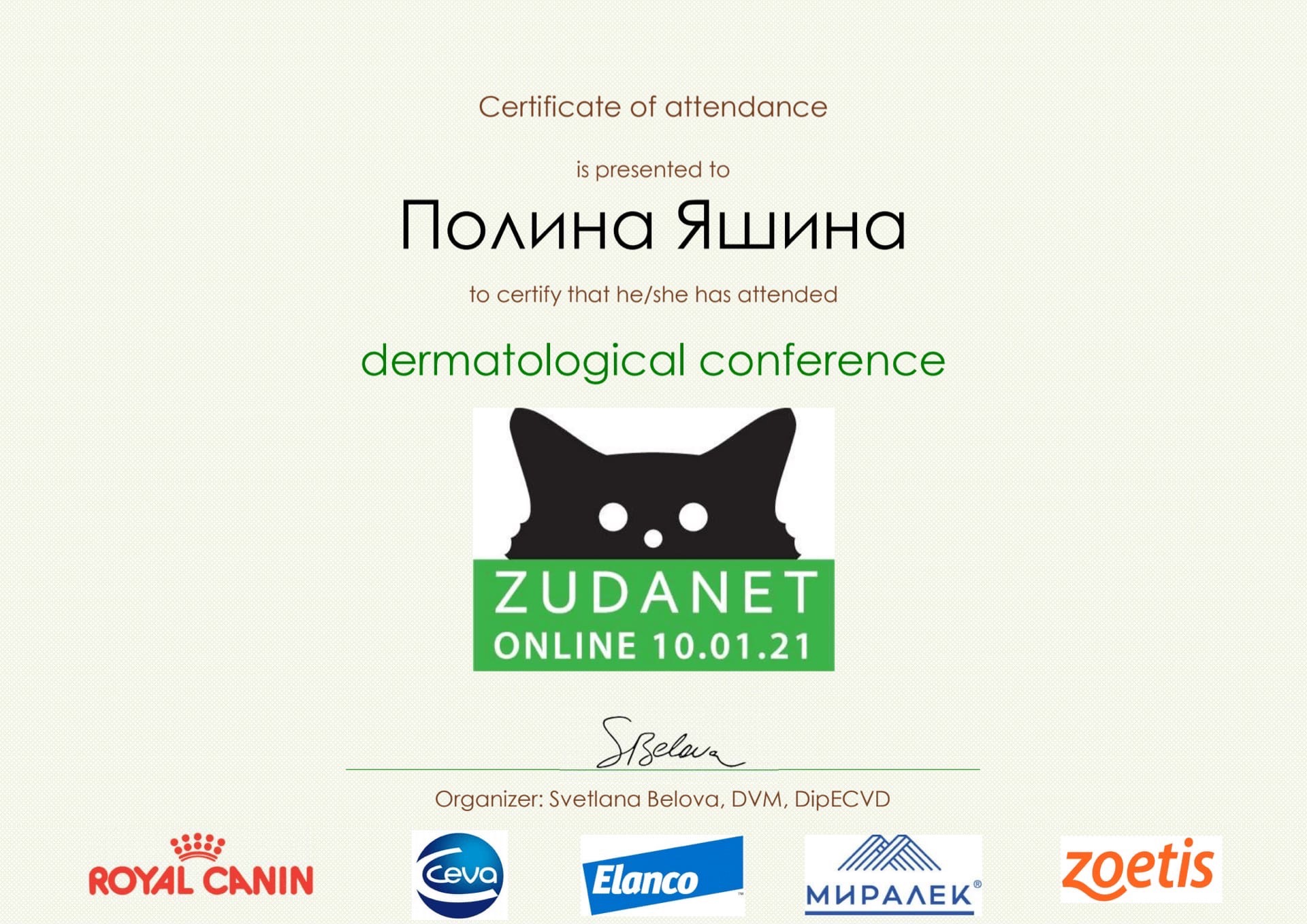 2019 г. — конференция Royal Canin по дерматологии.